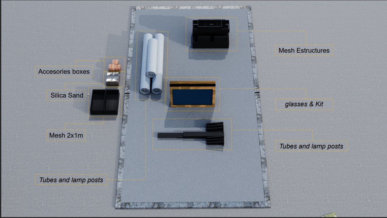 - todos los materiales deben estar colocados dentro de la solera, dentro del área que será el terreno de juego